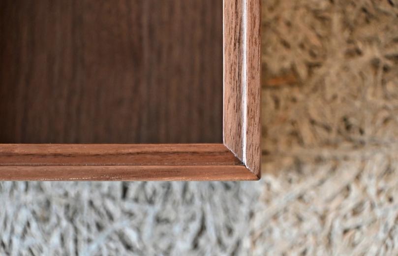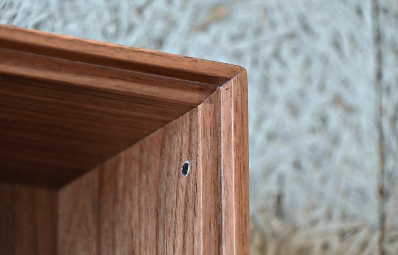 角を斜めにカットし45度の角度で合わせる事で接合部の小口を見せず
