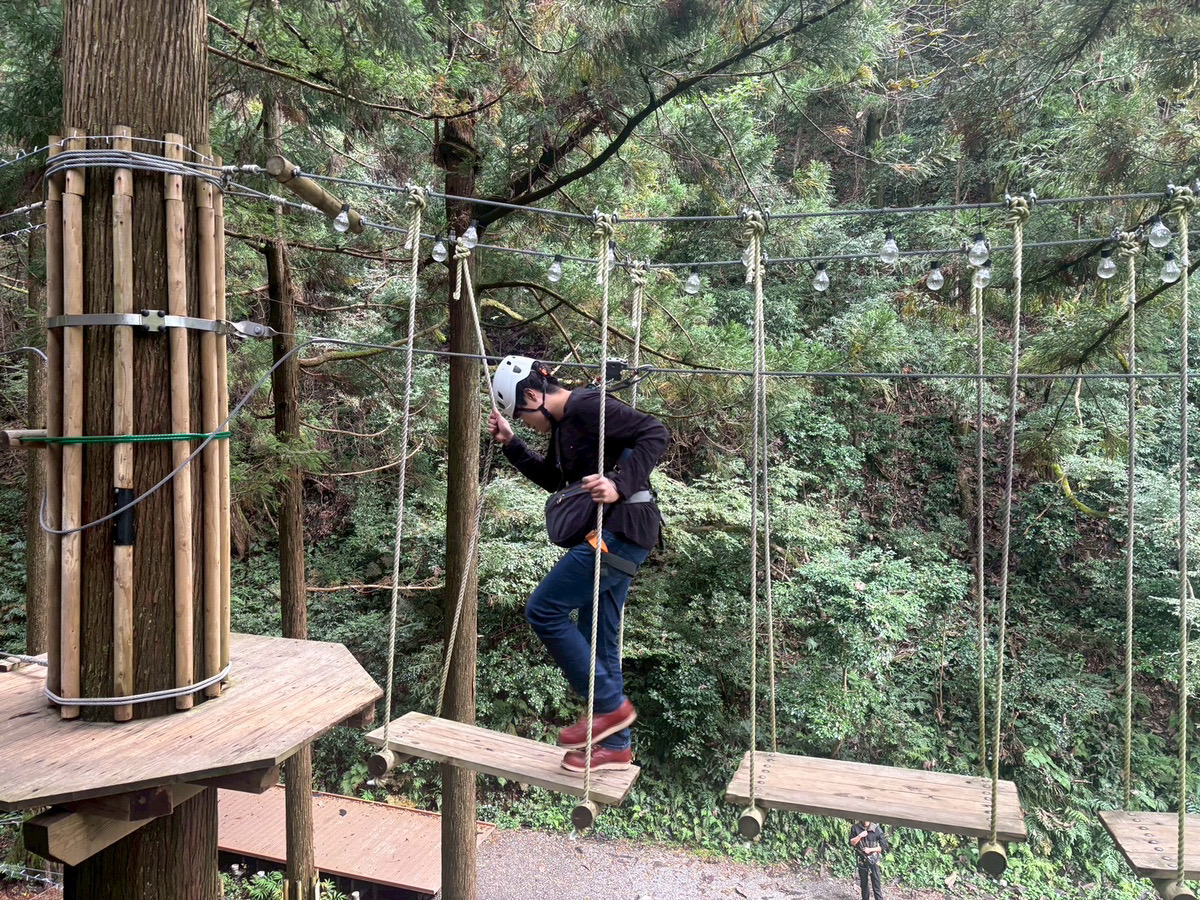 ひやひやしながらも挑戦を止めません(というかアスレチックの性質上スタートに立ってしまったら後戻りできませんでした笑)