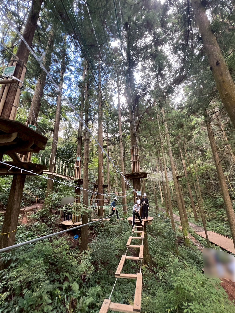 手綱のみを頼りに大自然に飛び込んだり、細いロープ一本を渡ったり、アスレチックに踏み出す瞬間の緊張感と踏み出す勇気