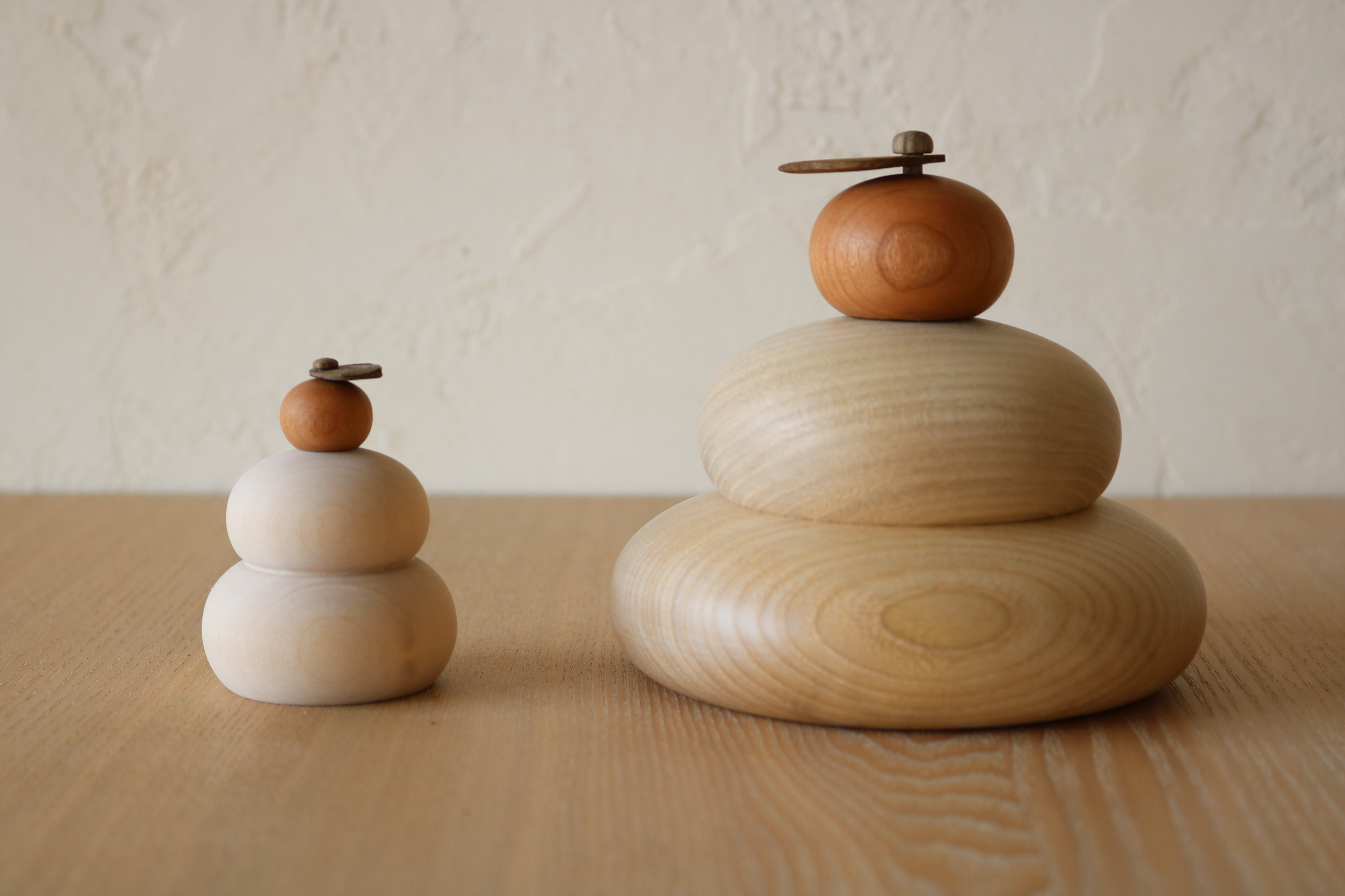 葉っぱの色、ミカンの色、おもちの色は木種を変えて塗装無しで再現しております。