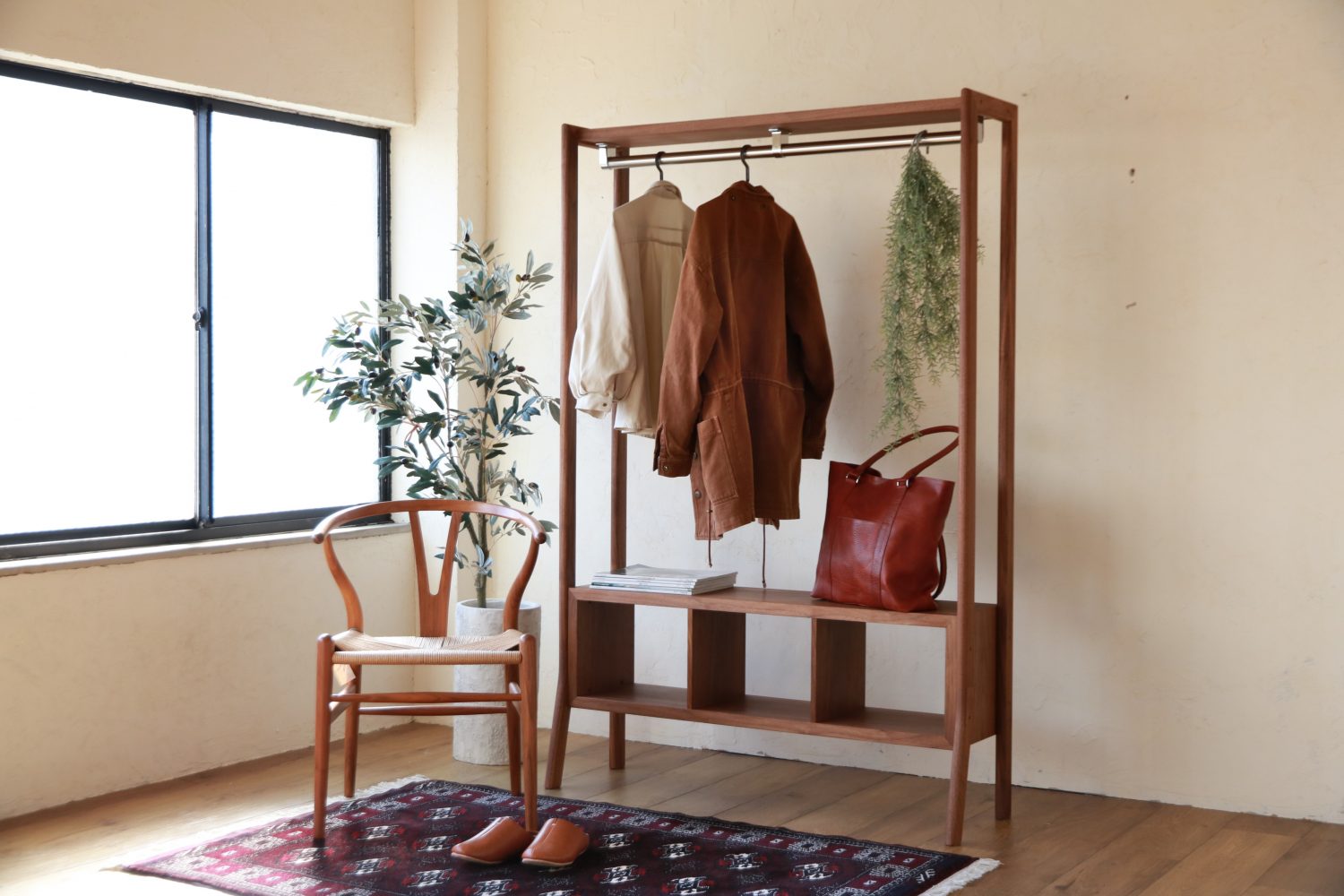 これまでもハンガーラックはいくつかありましたが、サイズが狭くて少ししか掛けられなかったり、デザインが自分好みでは無かったりとこれだ!と思えるものがありませんでした。
