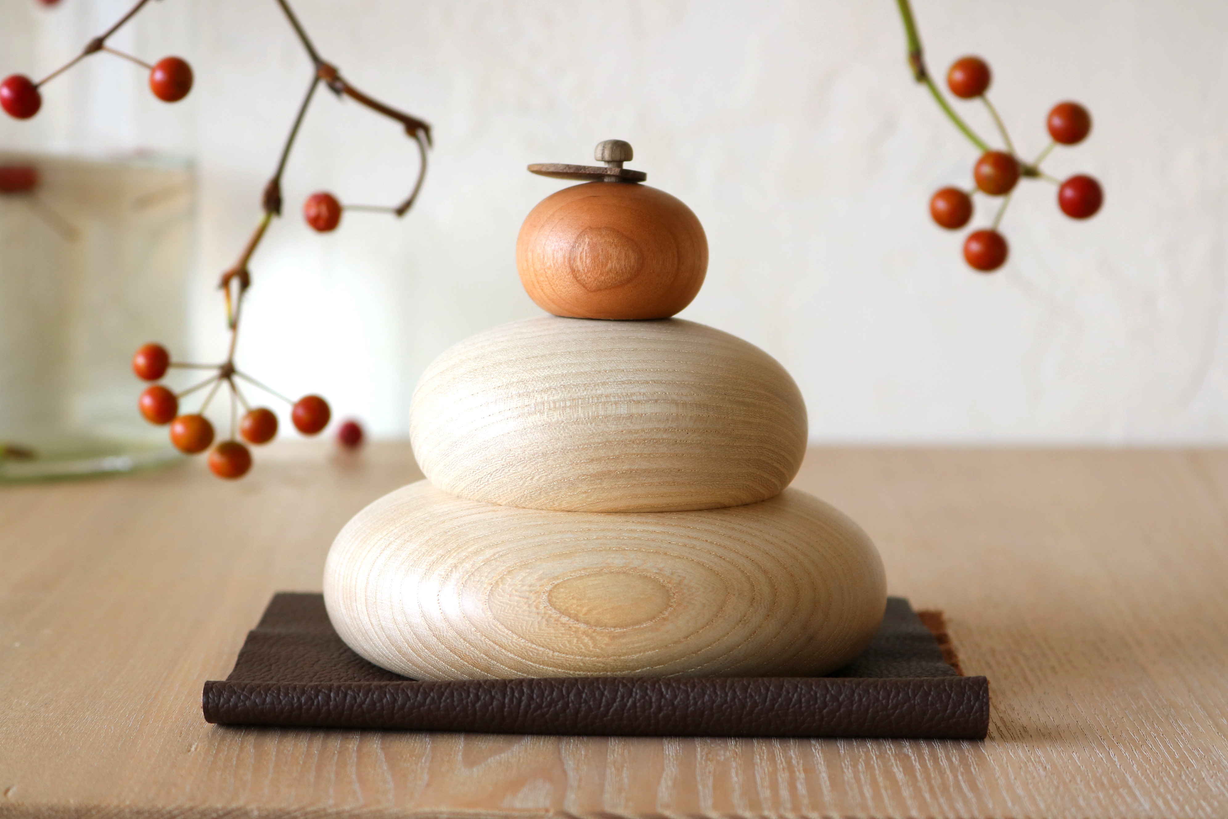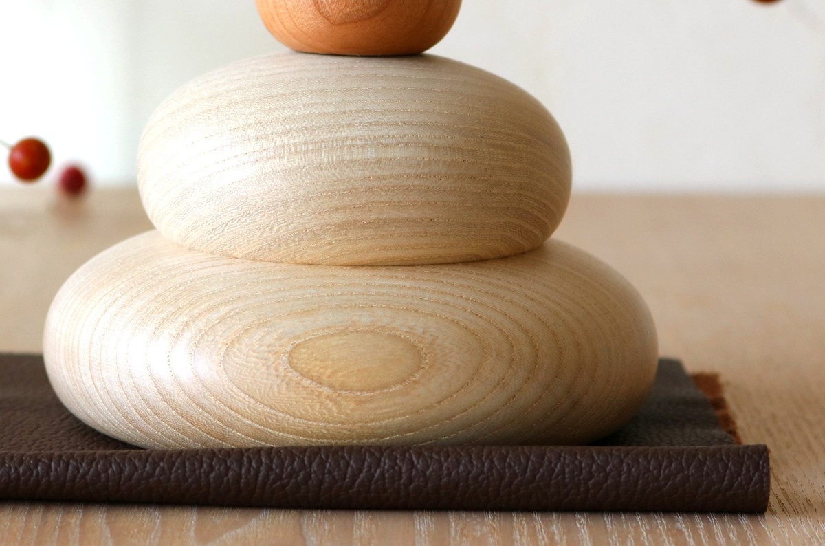 餅の部分はセン(栓)という無垢材(ワックス仕上げ)を使っていまして、