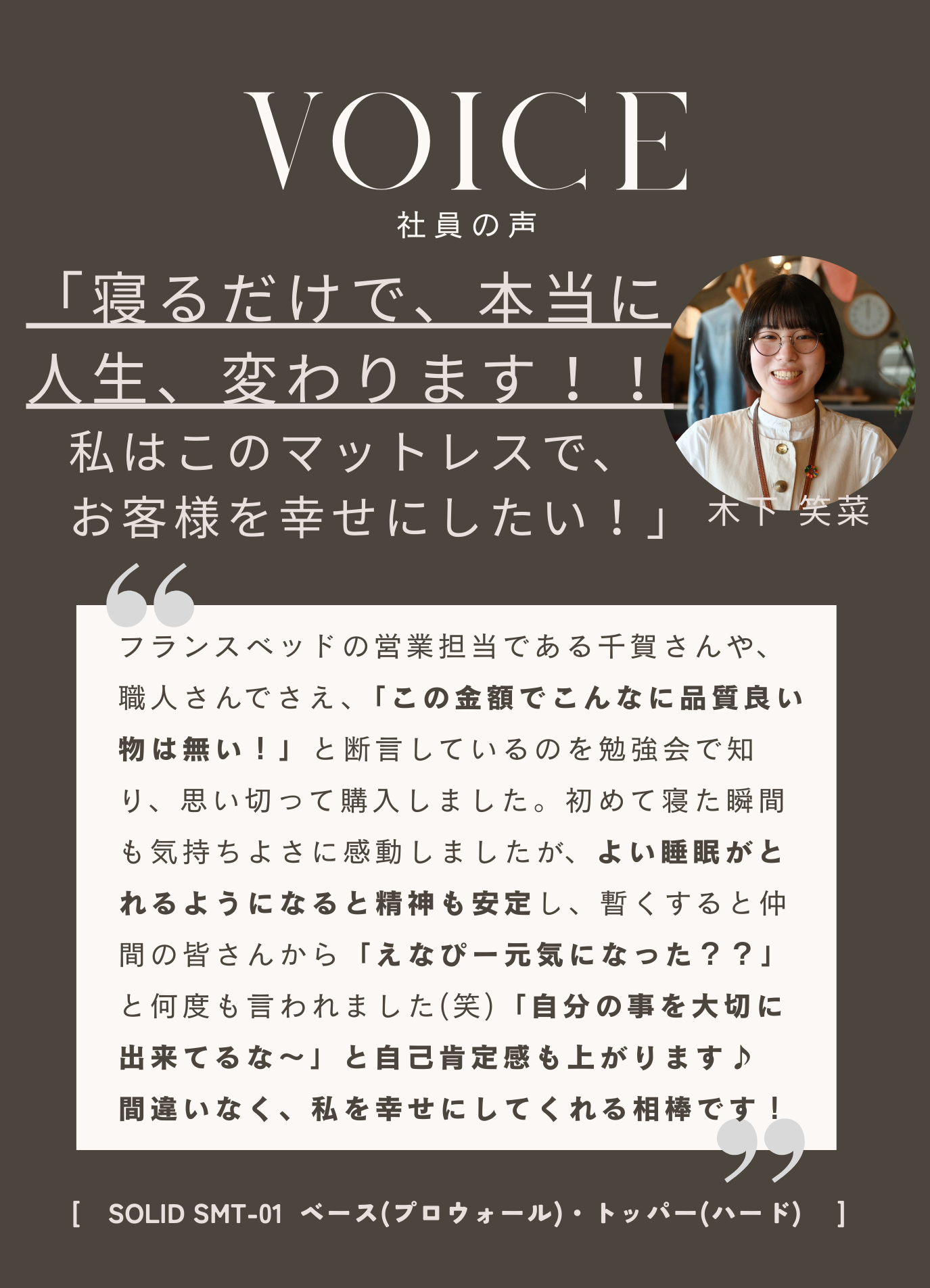 こちらのマットレスが社員からもお客様からも