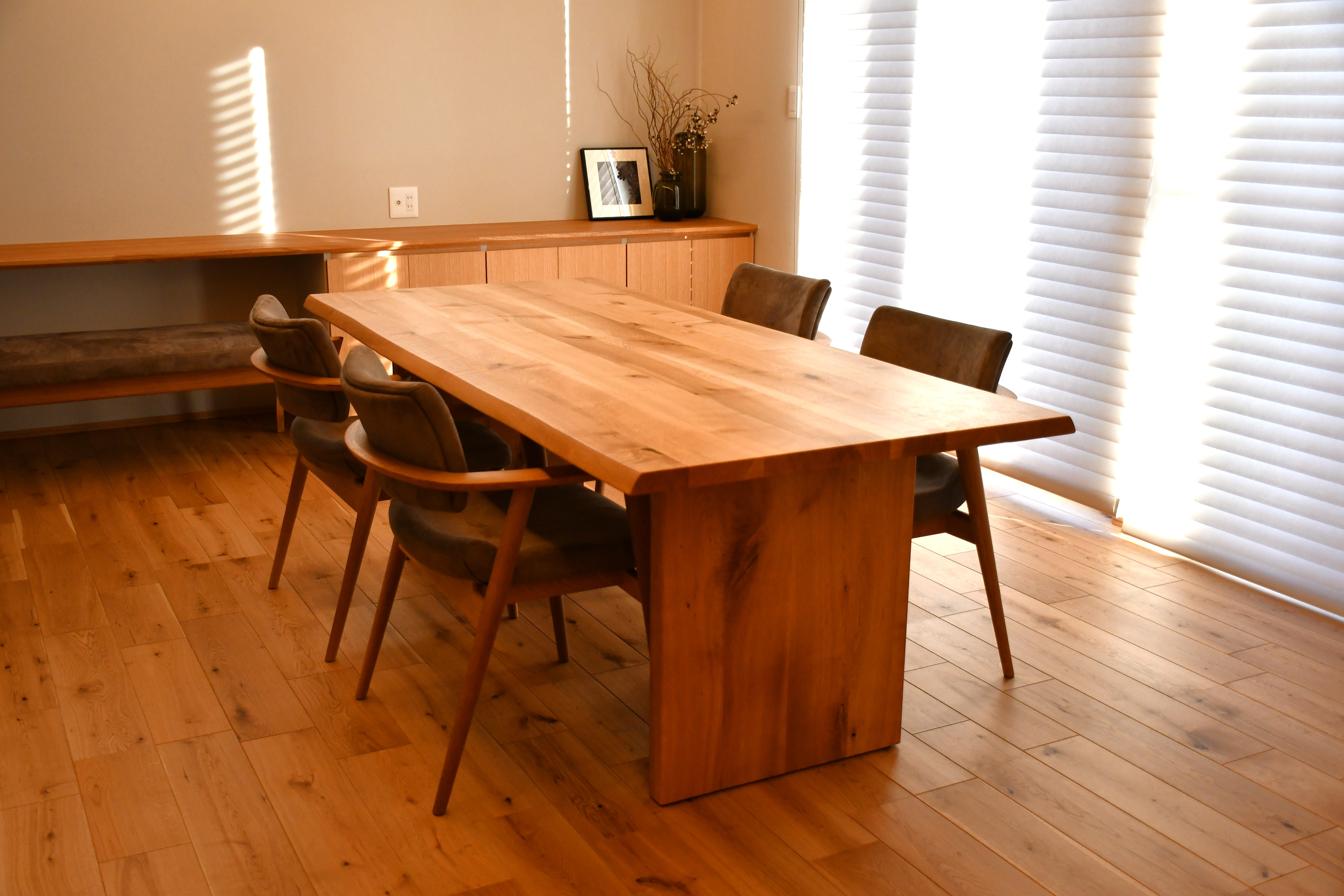 ベンチをダイニングテーブルに