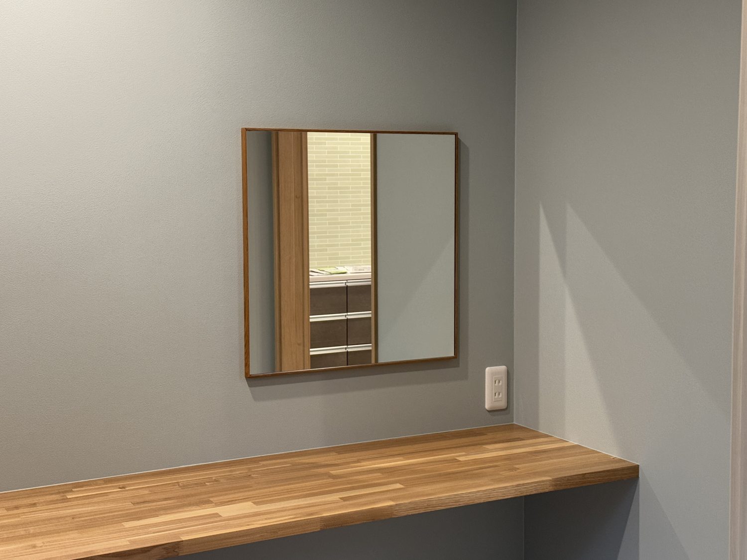 洗面用は縁が太いタイプでほっこりナチュラルな空間に相性がいいです。