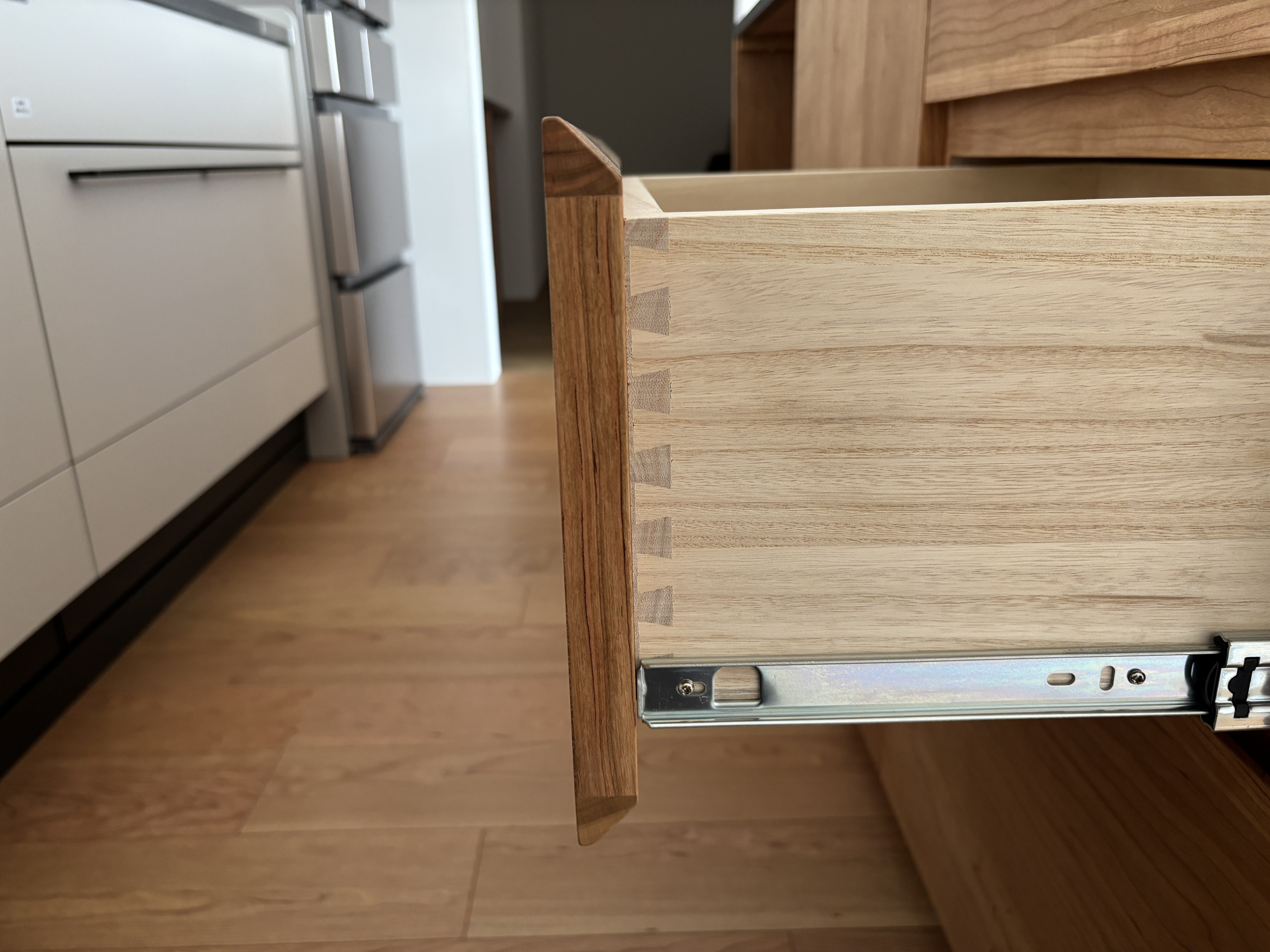 引き出しの前板との接合部分は