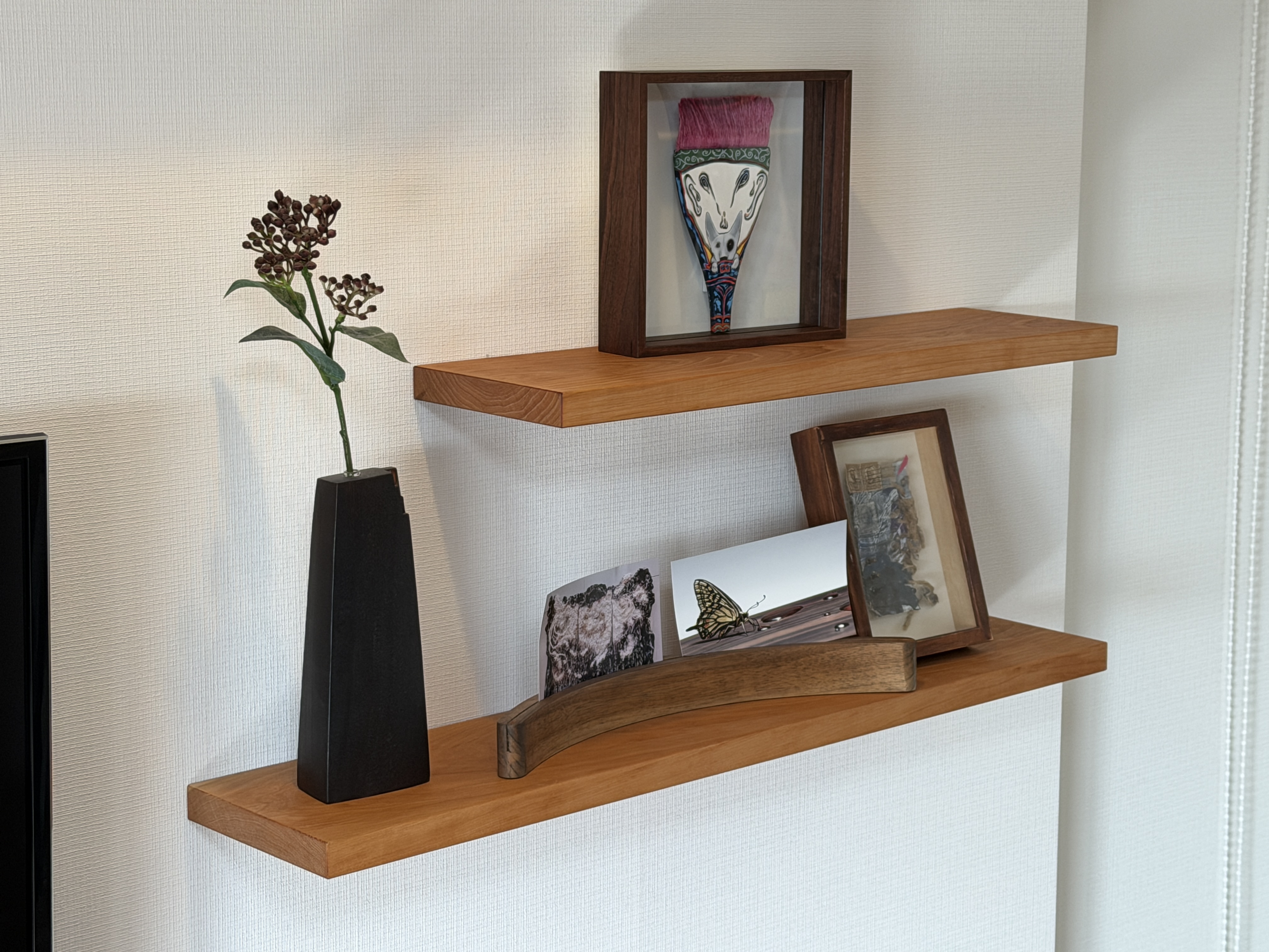 今回、この棚板を納品させていただいて、飾っているものがあまりに素敵でしたので、