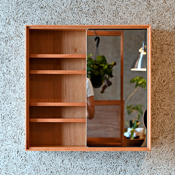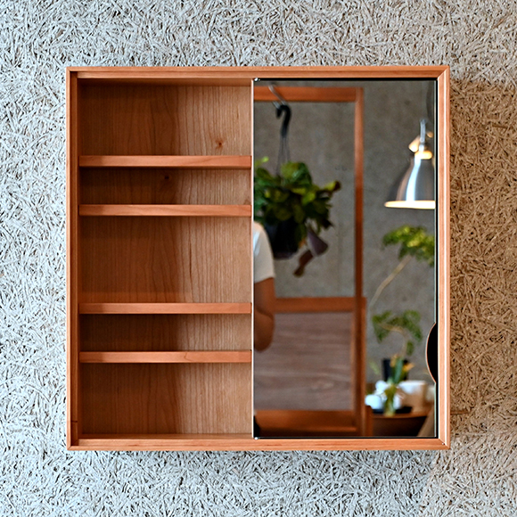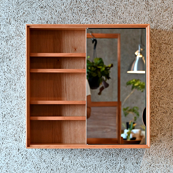 壁掛け収納ミラー スクエアタイプ -Black-Cherry-