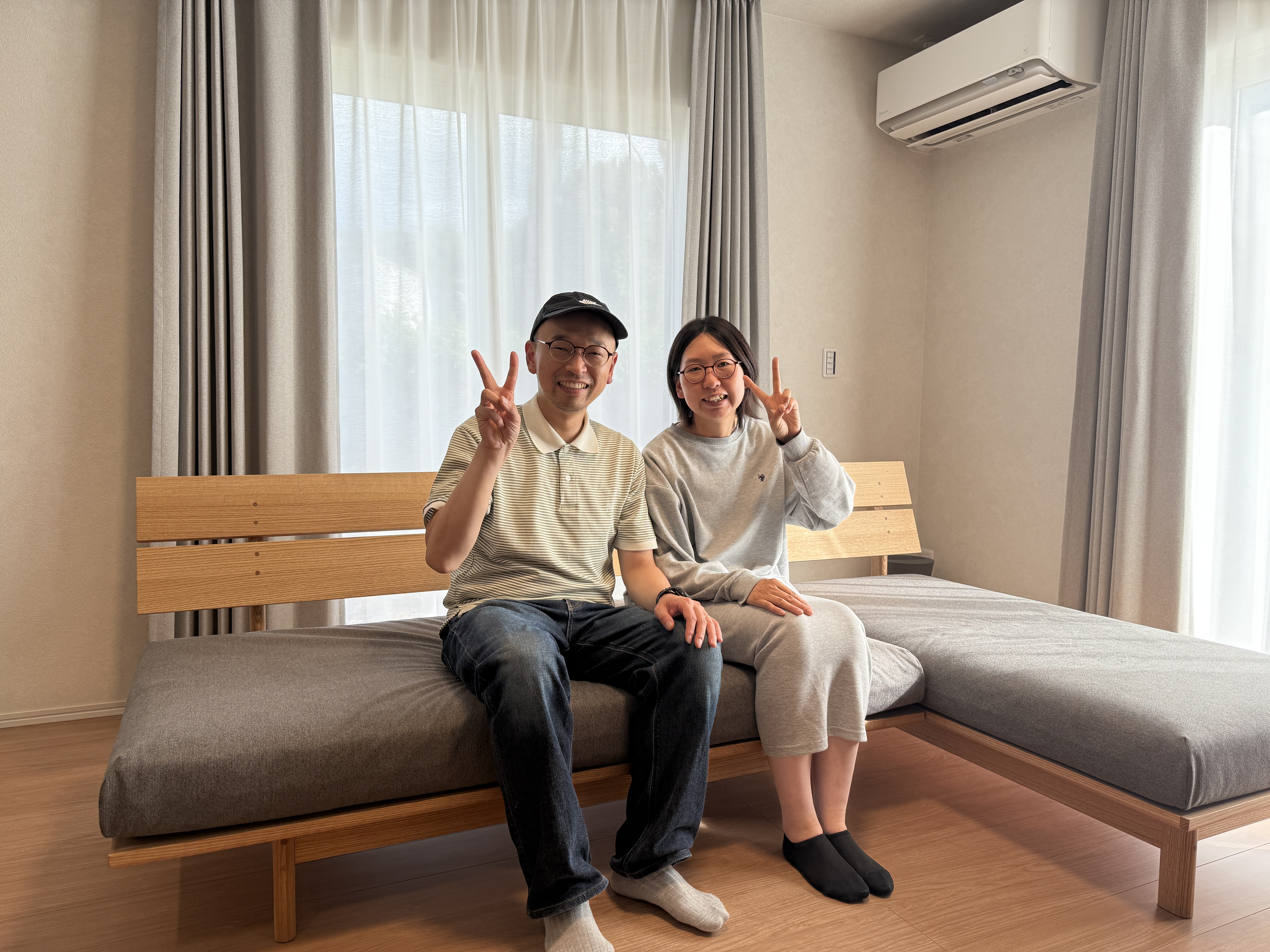 T様ありがとうございました! 製品のサイズや生地を何度も悩んでよかったです^^無事納品出来、製品も気に入っていただけたようで嬉しいです^^お二人の笑顔が見れて安心しました☺これから先何かありましたら必ず弊社でT様の家具をお守りいたしますのでいつでもご相談ください 今後ともどうぞよろしくお願いいたします 寺田